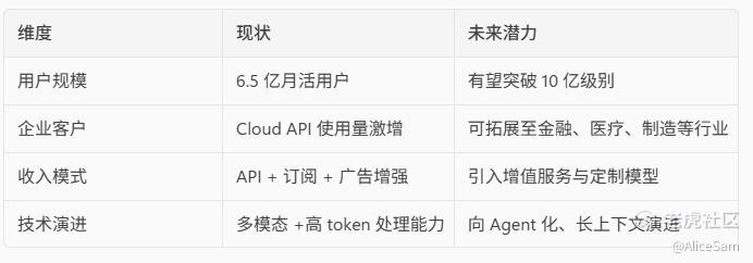 而且,目前看来,他们的多模态能力与扩展性也非常强,例如Gemini 具备文本、图像、代码等多模态处理能力,适用于企业文档自动化,医疗影像分析,教育内容生成,软件开发辅助(如 Gemini Code Assist)等,这为其打开了多个行业的应用场景。具体一点的看,Gemini 模型的商业前景可归纳为: