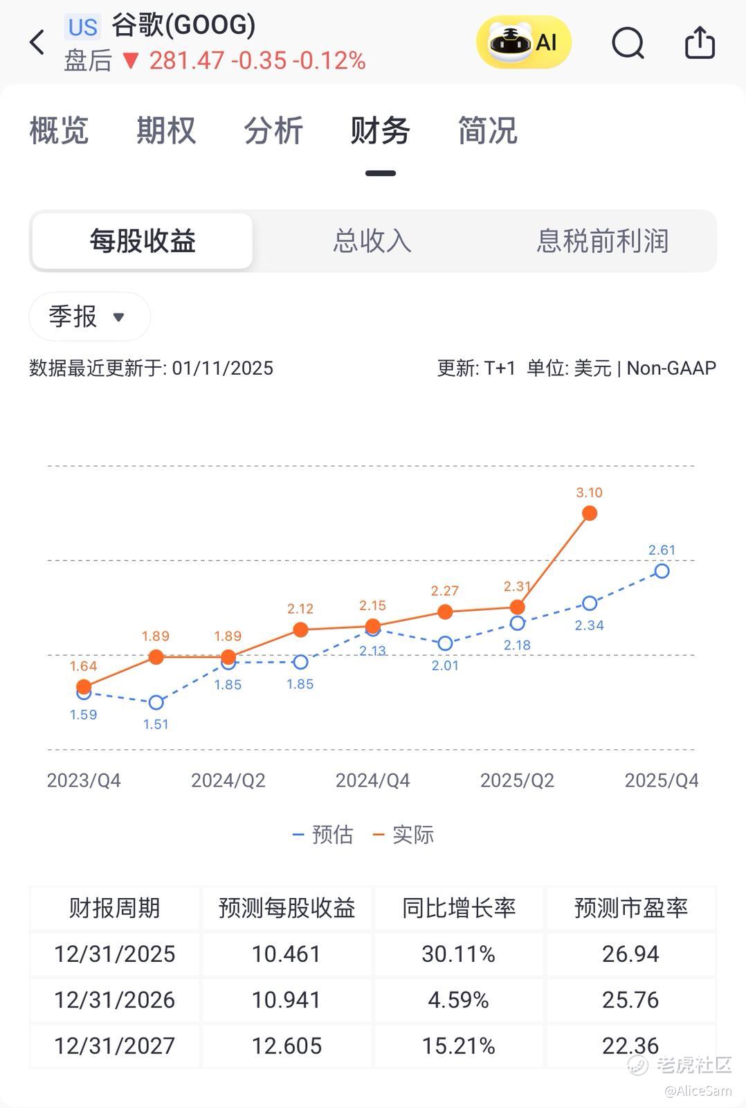 风险提示这一块,他们在财报中强调的是投资收益波动可能导致未来其他收入项剧烈变化,AI模型与基础设施投入巨大,需持续评估回报周期,欧盟与其他地区监管风险仍在加剧,欧盟等地区对AI搜索结果的透明度要求可能影响产品部署,可能影响未来利润表现,但管理层也表示他们将继续加大 在AI 的投资,继续推动 Gemini 模型与 AI Search 产品在全球落地,并强化 Cloud 与订阅业务的增长动能。