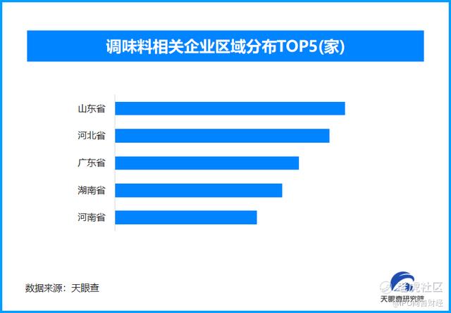 天眼查专业版数据显示,截至目前我国现存在业、存续状态的调味料相关企业超39.7万家。从区域分布来看,山东省、河北省、广东省调味料相关企业数量位居前列,分别拥有超3.8万余家、3.5万余家和3万余家。