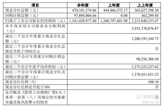 今年4月底,水井坊公告称,2024年,水井坊向全体股东每10股派现9.7元(含税),合计拟派发现金红利约4.7亿元(含税)。这一现金分红占当年归属于上市公司股东净利润的35.06%;而现金分红比例高达108.1%