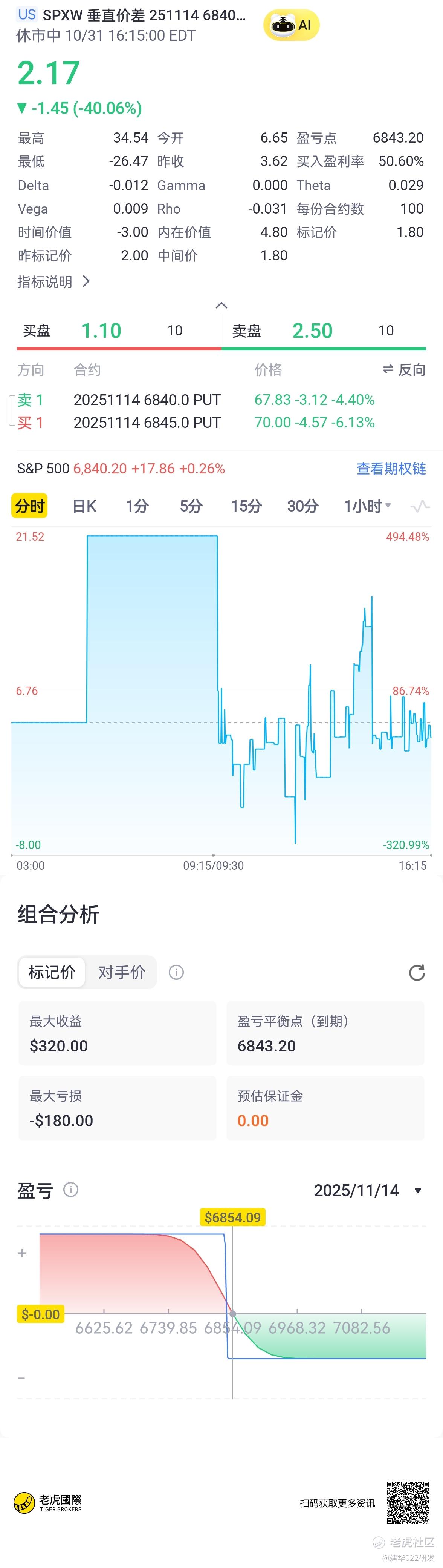 $SPXW 垂直价差 251114 6840.0P/6845.0P$
