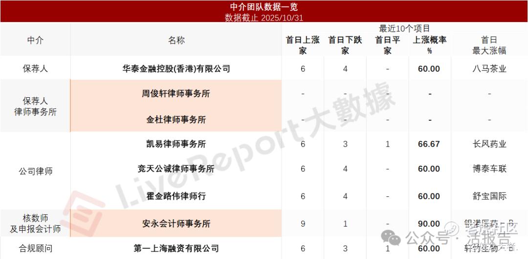 据**大数据统计,博瑞医药中介团队共计8家,其中保荐人1家,近10家保荐项目数据表现普通;公司律师共计3家,综合项目数据表现一般。整体而言中介团队历史数据表现平平无奇。