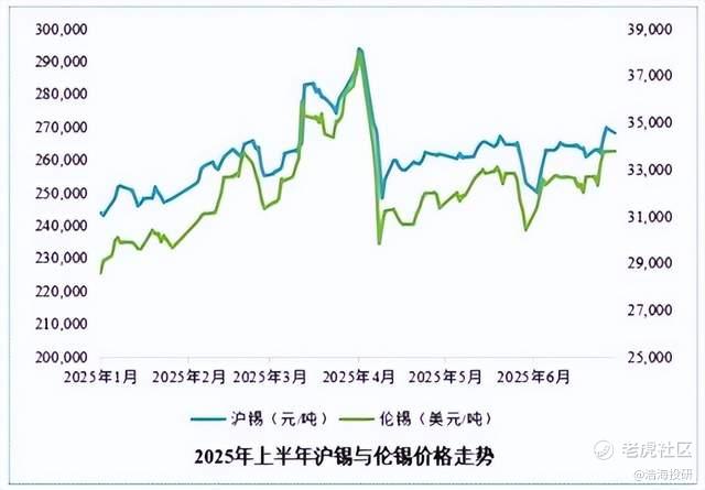 2025年上半年,锡在供需博弈中走出了跌宕行情。一季度受矿源紧张推动锡价冲高;4月初因海外经贸摩擦冲击骤跌,随后震荡修复;6月东南亚锡矿主产国推进复产又对锡价造成了短期扰动。