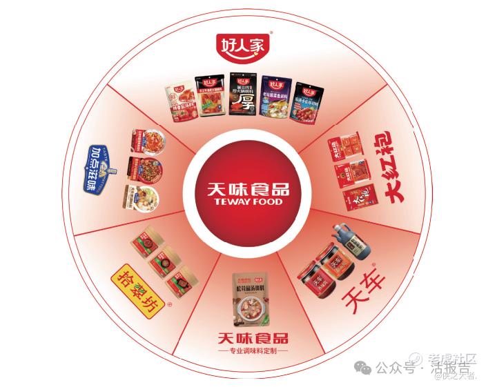 公司的产品通过六个品牌推出,每个品牌均定位服务特定客户群体并聚焦特定产品类别:涵盖多元化的消费场景及销售渠道,即好人家、大红袍、天车、天味食品专业调味料定制、拾翠坊及加点滋味。
