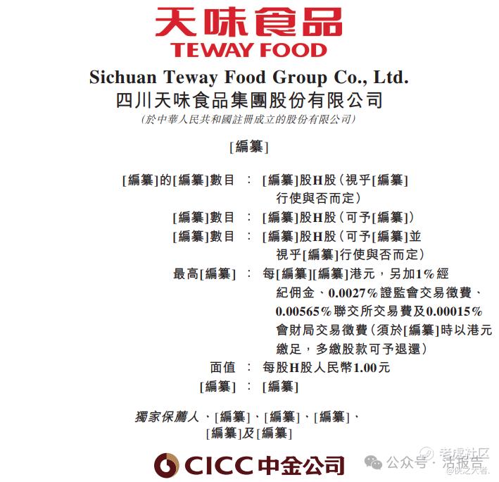 **获悉,四川天味食品集团股份有限公司Sichuan Teway Food Group Co., Ltd.(简称“天味食品”)于2025年10月30日在港交所递交上市申请,拟在香港主板上市。