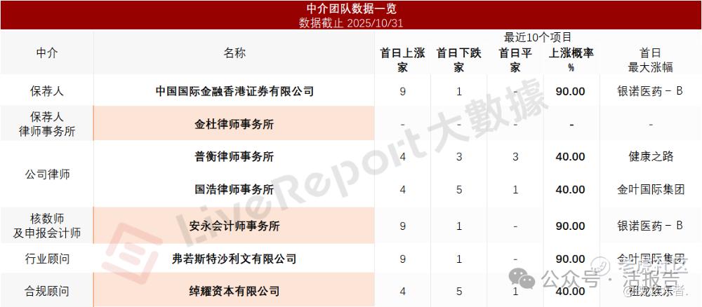据**大数据统计,天味食品中介团队共计7家,其中保荐人1家,近10家保荐项目数据表现优秀;公司律师共计2家,综合项目数据表现不足。整体而言中介团队历史数据表现有待改进。