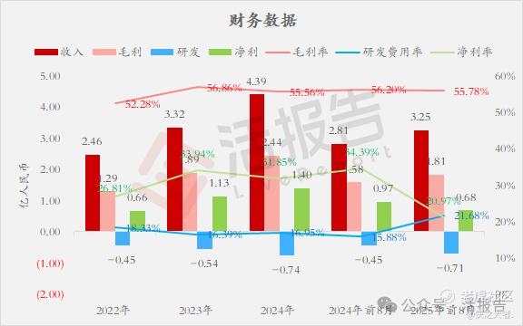 收入分别约为人民币2.46亿、3.32亿、4.39亿、2.81亿、3.25亿,2025年前8月同比+15.83%;