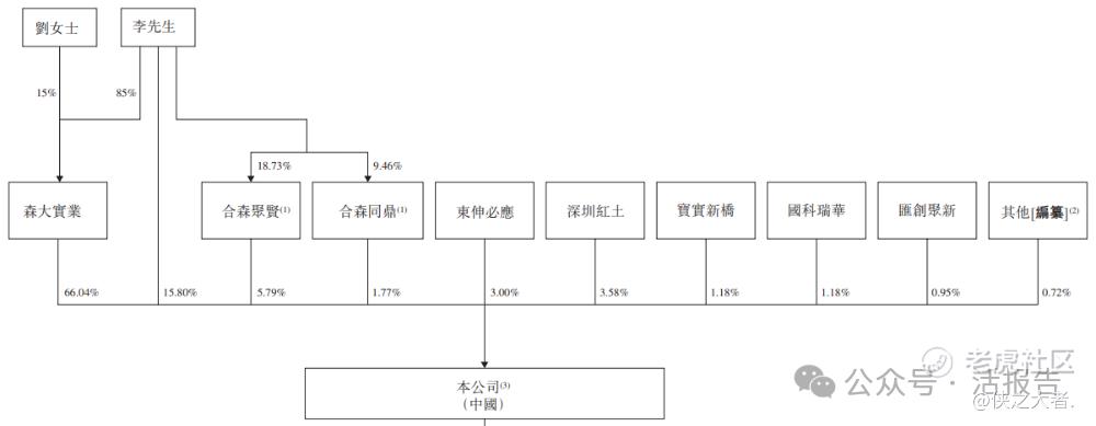 李先生直接持股15.80%,并通过森大实业、雇员持股平台合森聚贤及合森同鼎间接持股66.04%、5.79%及1.77%,合计持股89.40%。