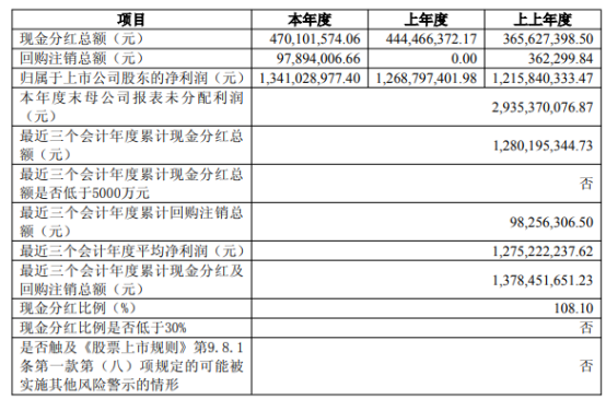 截至2024年,水井坊最近三个会计年度累计现金分红总额约12.8亿元。