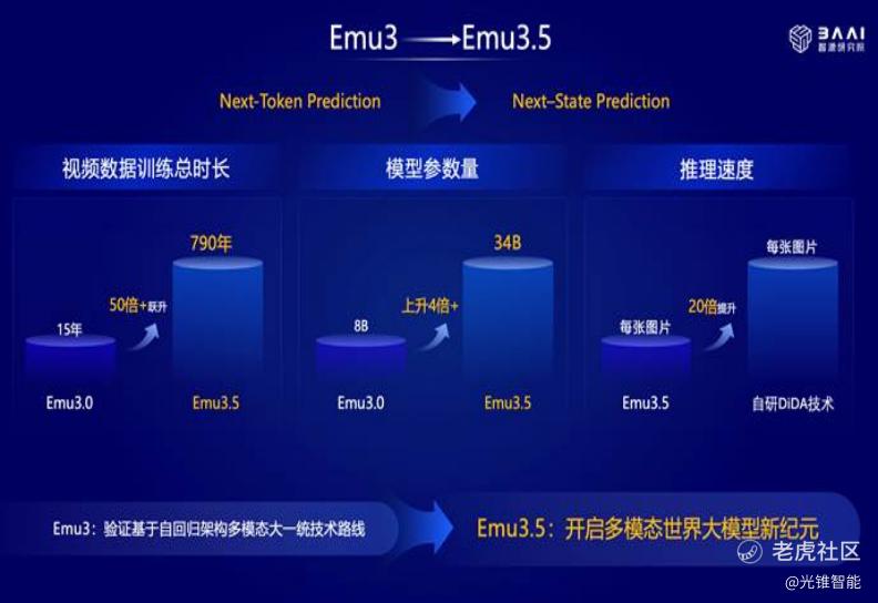 从去年10月发布全球首个原生多模态世界模型悟界·Emu3,到如今推出全面升级的悟界·Emu3.5,智源研究院用一年时间,找到了更多具备开创性的新解法。