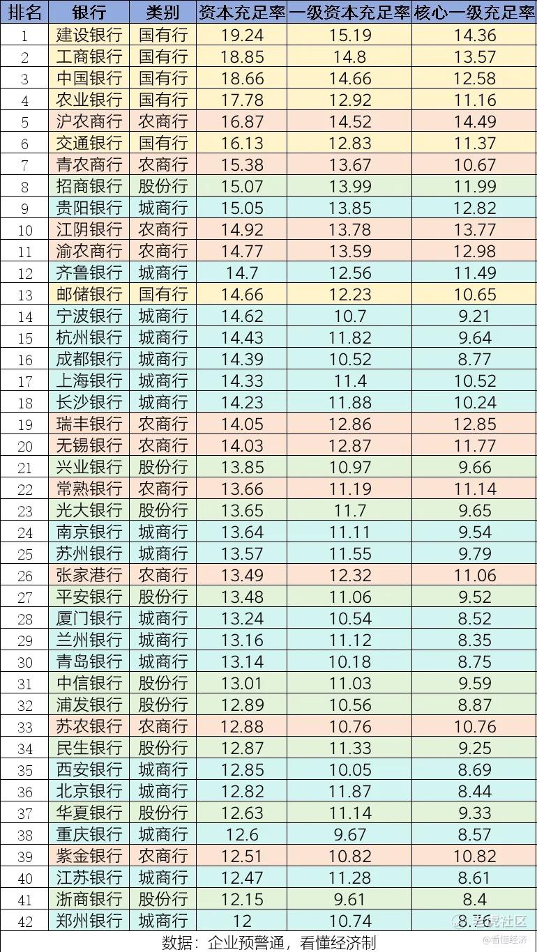 资本充足率的排名,直接关联银行未来的发展潜力。
