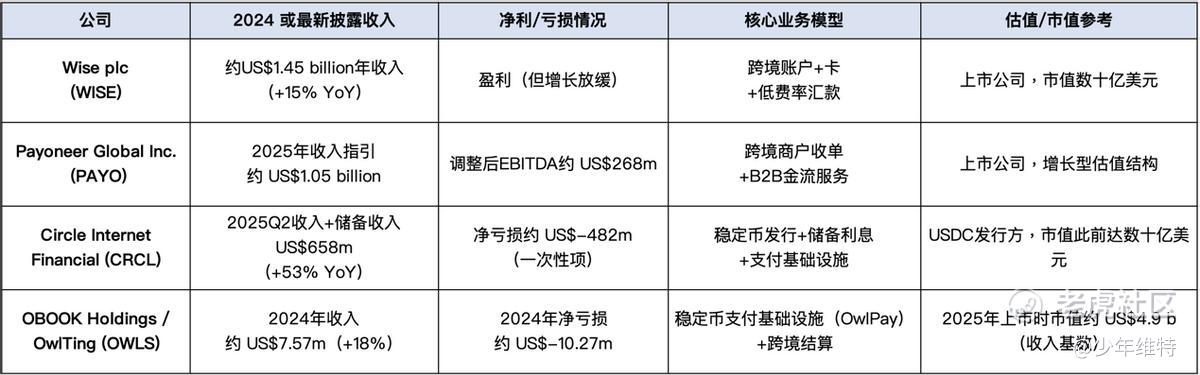 二级市场看,如果把跨境支付和稳定币的几家公司放在一条时间线上,Wise、Payoneer、Circle和OwlTing其实代表着不同的进化阶段。前两家是传统的效率革命,把跨境转账这件事做得更快、更便宜;Circle是货币层的创新,用稳定币重写“美元的形态”;而OwlTing想干的,是更底层的“清算革命”,让稳定币真的能进入企业财务系统,跑进发薪、结算和供应链资金流里。