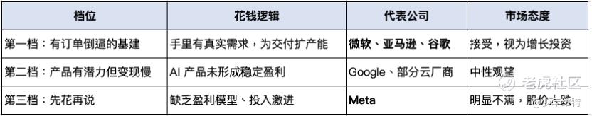 AI 热潮席卷整个美股,但市场对几家巨头的“烧钱速度”早已分了层。