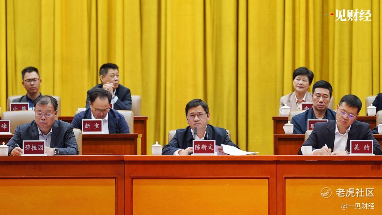 10月23日,广东佛山顺德区召开企业家大会,包括美的集团执行总裁王建国、碧桂园控股总裁莫斌在内的民营企业家,和佛山市委常委、顺德区委书记陈新文坐在主席台。