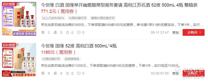 然而,今年主力单品动销乏力。业内专注提供名酒价格行情的“今日酒价”网显示,今世缘国缘四开价格为380元/瓶,不足400元;“什么值得买”也显示,国缘系列产品折单瓶价格在400元以下。