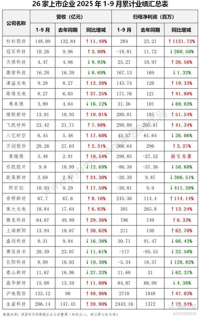 杉杉股份、雅克科技、有研新材、沪电股份、生益科技、万润股份等26企披露2025年第三季度业绩-新浪财经