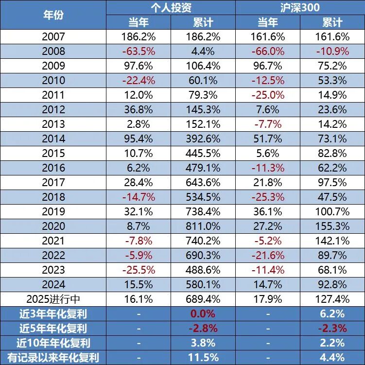 近3年的年化复利再次转至盈亏平衡点,但沪深300已经来到很不错的年化+6.2%。