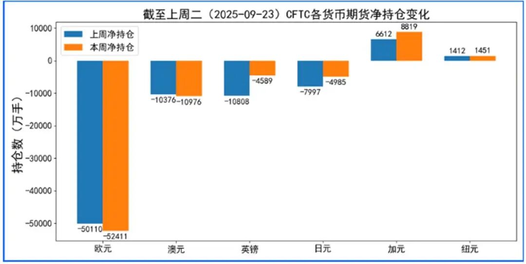 据美国商品期货委员会公布的2025-09-23期货市场头寸持仓报告显示,上周各货币的报告总持仓情况如下:欧元净空头变化2301手,澳元净空头变化600手,英镑净多头变化6219手,日元净多头变化3012手,加元净多头变化2207手,纽元净多头变化39手,上周没有总持仓多空转换的货币。除此之外,单向总持仓变动超过20%的货币有:加元。
