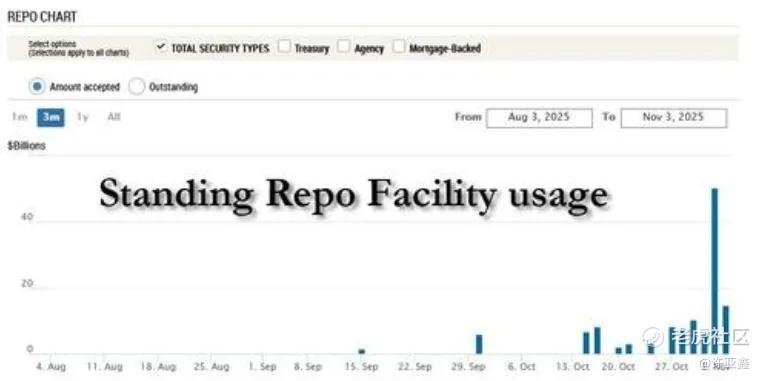 一方面,11月3日,美联储常设回购工具(SRF)使用量达到147.5亿美元,为该工具常设化以来第二高,上周五创下503.5亿的历史新高。