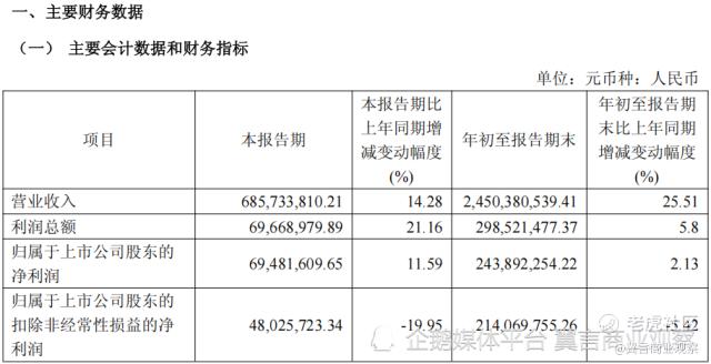 需要注意的是,公司第三季度实现营业收入6.86亿元,同比增14.28%,这也是丸美连续11个季度实现营收同比双位数增长。另外,归属于上市公司股东的净利润为6,948.16万元,同比增速达11.59%,每股收益增速达12.5%,显著高于前三季度平均水平。