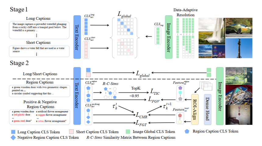 其次,有了高质量的数据,还需要相应的训练方法来释放其潜力。FG-CLIP2采用了一种“先全局,后局部”的两阶段训练策略。