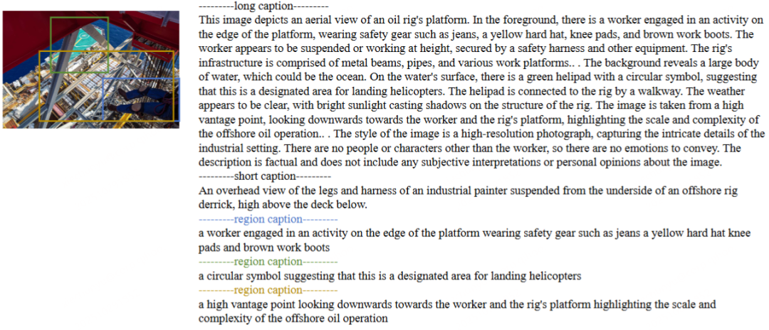 第一,在全局层面,每张图像同时配有一段约20词的短文本和一段超过150词的长文本,既概述场景核心语义,又补充物体属性和空间关系,让模型在宏观理解的同时具备细节记忆。