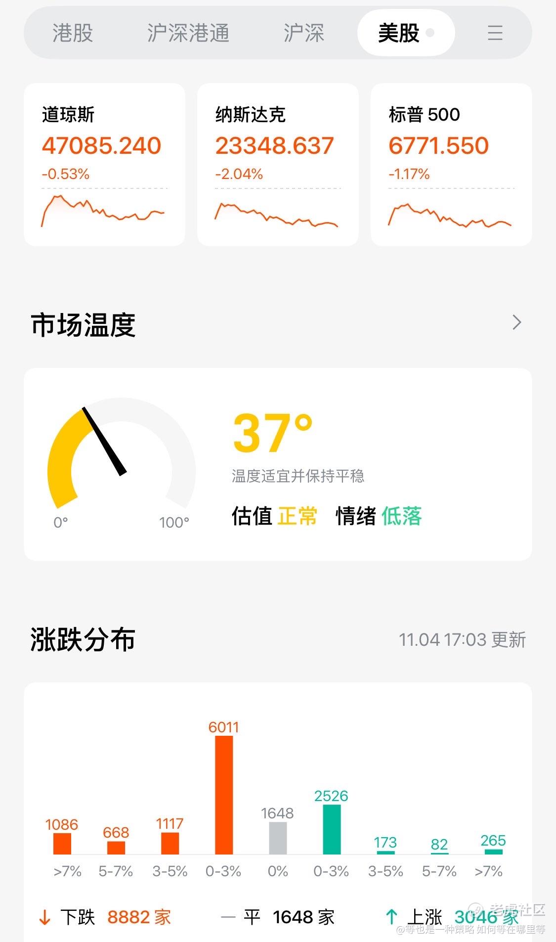 美股市场已经6个多月没有大幅下跌了,现在如果能多跌一些,消减一部分高估值,反而有利于长期上涨。
