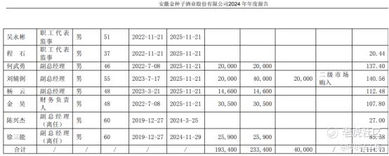 图注:金种子酒2024年董监高人员持股变动及报酬情况
