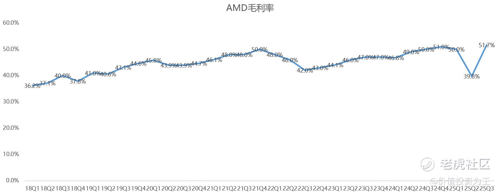 收入端超预期的情况下,AMD三季度毛利率达到51.7%,创历史记录: