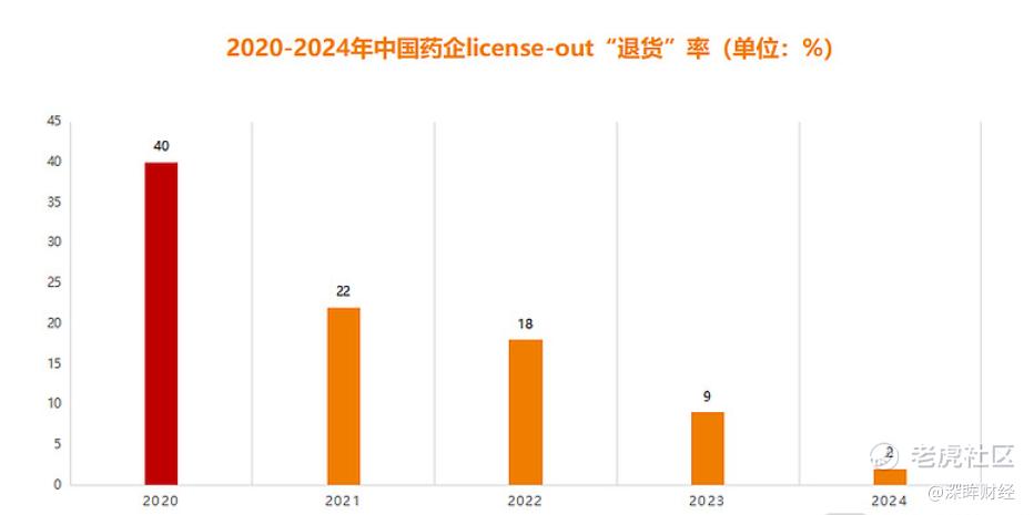 据动脉网统计,2020年的62起License-out交易中,截至2025年4月20日有25起明确终止合作,退货率高达40%,且2021年、2022年的License-out交易的退货率都在20%左右。