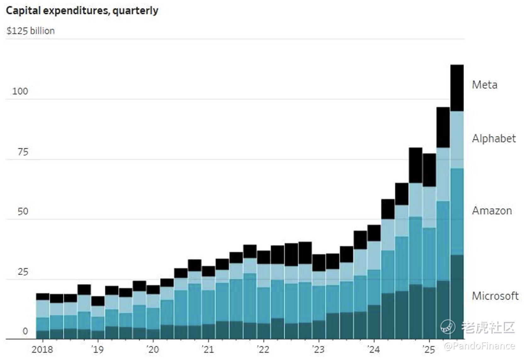 然而,市场对M5财报反应分歧:Meta 财报后股价暴跌 11%,微软下滑近 3%,Amazon 盘后却大涨逾 10%。电话会议上,分析师直指:「我们是否正陷入 AI 泡沫?」企业高层回应:短期成本压力确实沉重,但若不提前卡位,恐在竞争中出局。本质上,潘渡认为这波 CAPEX 浪潮已演变为 AI 军备竞赛。谁能率先逼近通用人工智慧(AGI)或构筑更高效的云端与模型生态,谁就将主宰下一代运算霸权。尽管股价短期震荡,这场 AI赛局仍是科技巨头押注未来的决胜关键。
