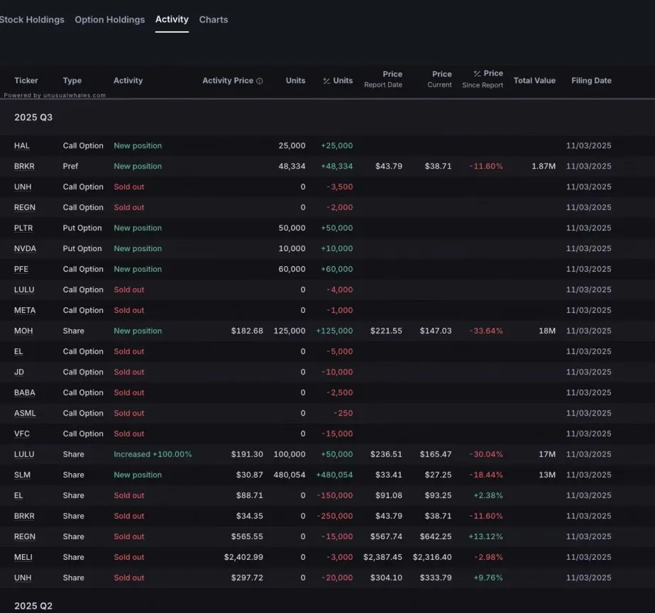 短期利空不断。Michael Burry提前两周披露了Q3 13F报告,旗下基金Scion Capital开始做空PLTR和英伟达,尤其是Palantir,下了很重的赌注——买了价值9.12亿美元的 $Palantir Technologies Inc.(PLTR)$ 看跌期权,占他整个投资组合的三分之二,价值1.87亿美元的 $英伟达(NVDA)$ 看跌期权,占他投资组合的约14%。(不过没有披露具体期权的权利金、行权价及到期日)[抠鼻]