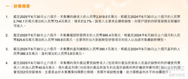 2021年复宏汉霖成功摘“B”,此后业绩持续向好。财报显示,2025年上半年其营收28.20亿元,同比增2.7%,收入主要来自药物销售、研发服务及授权许可收入。净利润3.9亿元,经营性现金流超7.71亿元,同比大增206.8%。创新药H药“汉斯状”已在欧盟、新加坡等近40个国家和地区获批上市,此外,海外产品表现亮眼,实现销售收入约0.41亿元(含供货及特许权使用费收入),海外利润(含供货毛利及特许权使用费利润)较去年同期实现超2倍增长,主要得益于国际化战略推进下美国市场的销售放量,助力国际盈利水平持续提升。