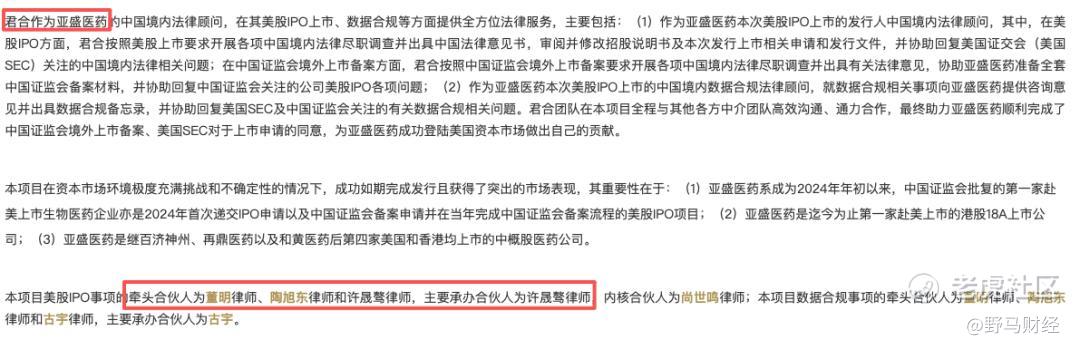 2025年1月24日,许晟骜进一步参与了亚盛医药(AAPG.NASDAQ,06855.HK)在纳斯达克的上市,为牵头合伙人、主要承办合伙人。