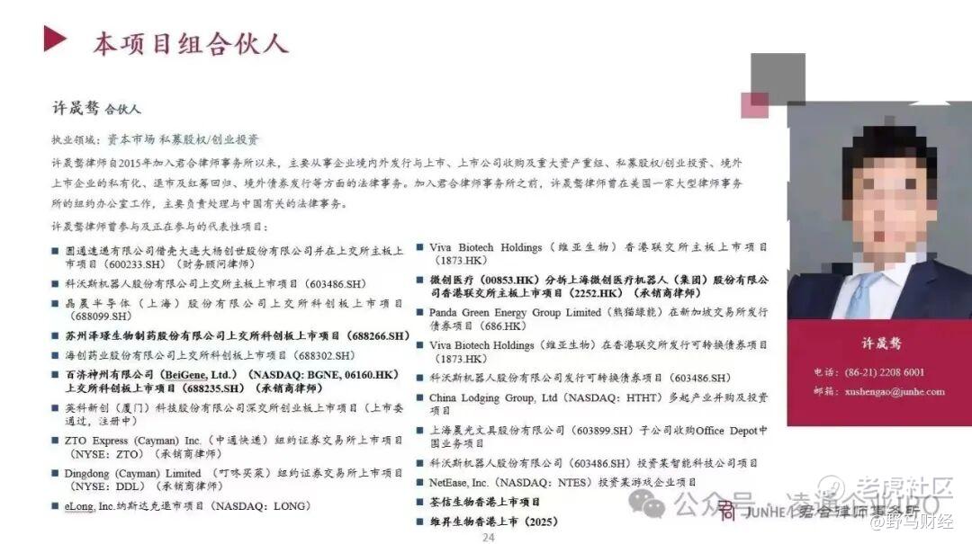 不过,由于君合律所已经删除许晟骜的信息,在百济神州、海创药业、晶晨半导体等的《招股书》中也并未出现许晟骜的名字。这意味着其并不是以上项目的主要律师。