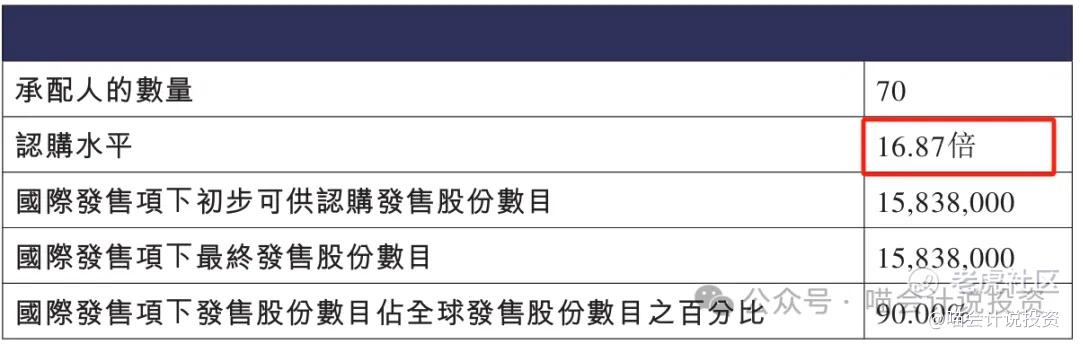 国际发售16.87倍,70名投资者,认购很踊跃,史珍香嘛。