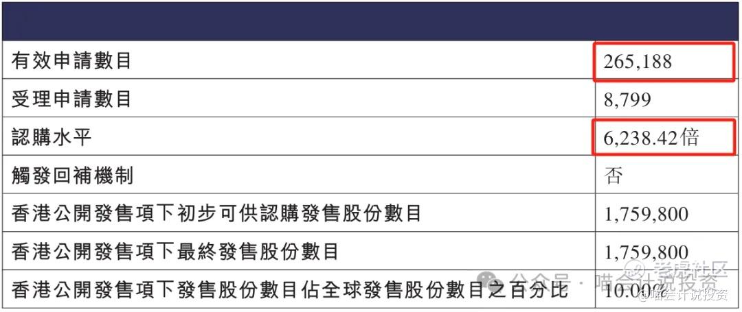 香港公开发售6238倍,申购人数26.5万,猴子都在这只票上,我培训的时候说过了。