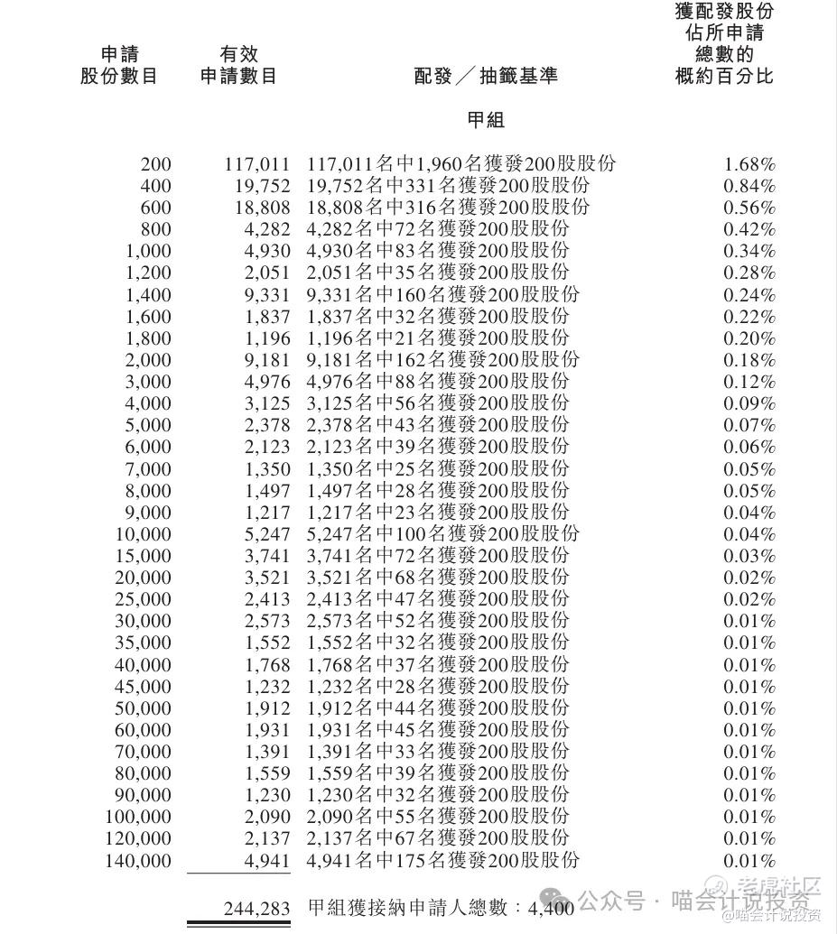 甲组分配:狂降,甲尾中签率3.54%,喵老师预测6%-8%,差的比较远。