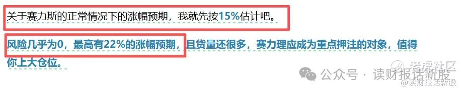 同样的这位博主,说赛力斯几乎0风险,最高上涨22%,正常上涨15%的,这波全力梭哈赛力斯!!!
