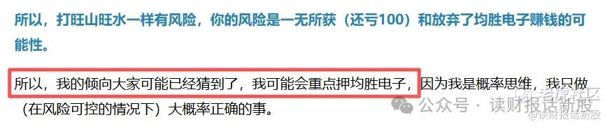 比如有人气高的博主在均胜和旺上旺水 $旺山旺水-B(02630)$ 中,选择重点打均胜的