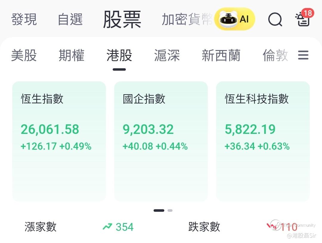 面对目前恒指市盈率 (TTM) 低于13倍,并以最大两只权重股同属科技股为例,腾讯控股 (0700) $腾讯控股(00700)$ 和阿里巴巴─W (9988) $阿里巴巴-SW(09988)$ 市盈率亦分别低于26和19倍,现时进场作中长线投资仍见吸引,意味著港股有不俗承接力。