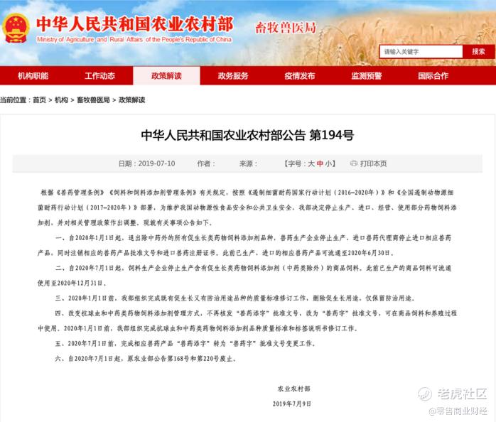 农业农村部第194号公告规定,自2020年1月1日起,退出除中药外的所有促生长类药物饲料添加剂品种,兽药生产企业停止生产、进口相应产品,标志着我国在畜禽等养殖领域全面迈入“控药减抗”阶段,且在《全国兽用抗菌药使用减量化行动方案(2021-2025年)》中,明确提出到2025年50%以上的规模养殖场实施养殖减抗行动的目标,生猪、蛋鸡、肉鸡、肉鸭、奶牛、肉牛、肉羊等畜禽品种为重点领域。