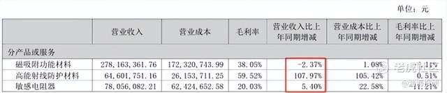 至于新莱福,以功能材料为核心,构建了“吸附功能材料+电子陶瓷元件+辐射防护材料”三大业务板块,但其中除了辐射防护材料,另外两大业务都表现出了不同程度的疲态。