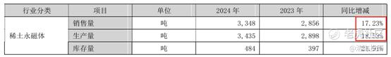 值得肯定的是,银河磁体在一定程度上扛住了经营压力,2024年其稀土永磁体销量同比增长17.23%,产销量均创新高。