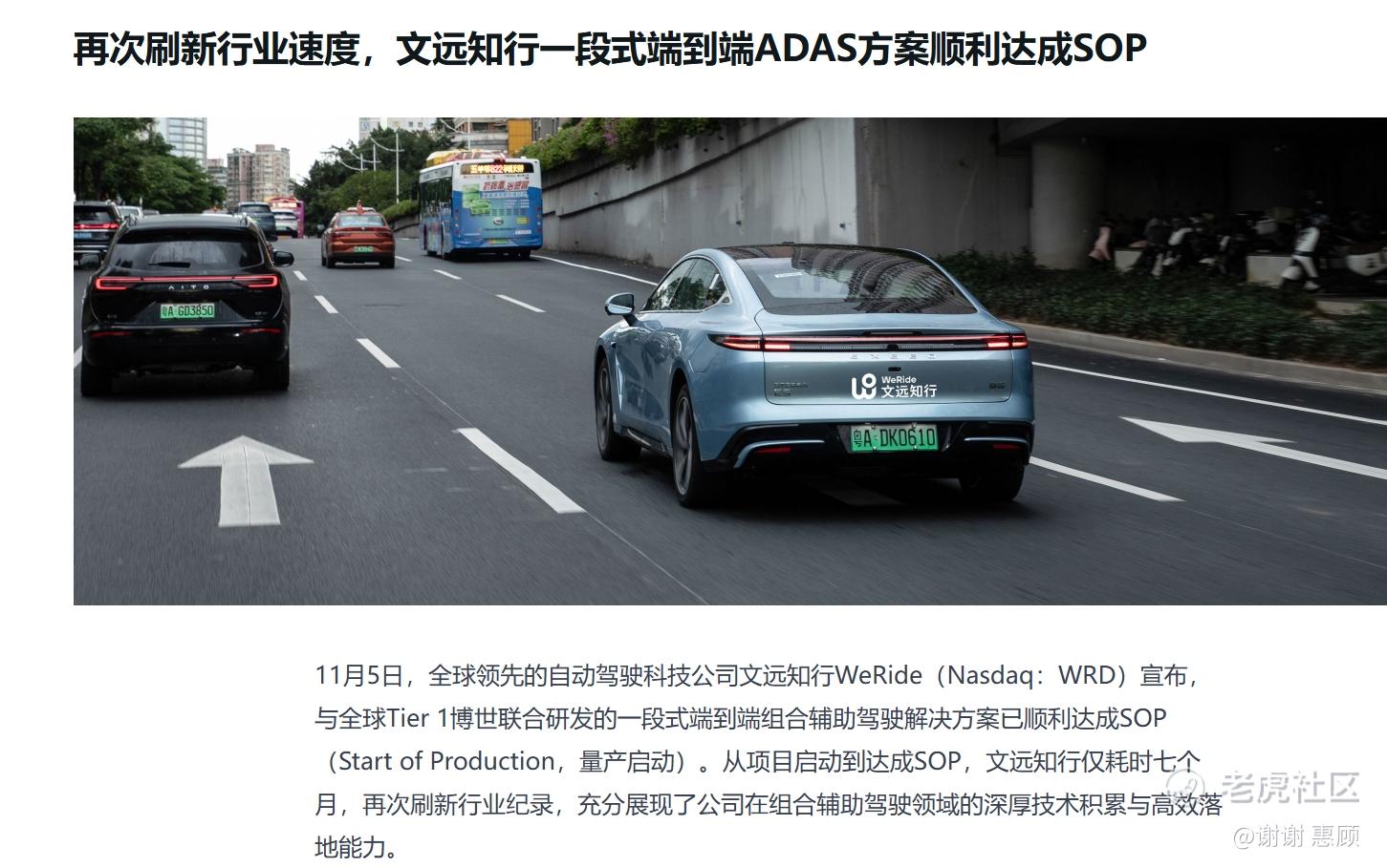 博世跟文远合作的一段式端到端组合辅助驾驶已经SOP量产了,怪不得博世那么看好文远知行,还参与文远知行港股的认购,现在看走势应该是要止跌反弹了