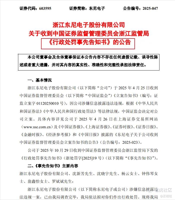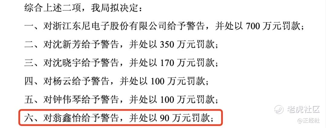 不过,这一次却不是什么光彩的事。近日,浙江东尼电子股份有限公司(下称:东尼电子)披露的《行政处罚事先告知书》显示,作为上市公司信息披露的直接责任人,由于任职期间的东尼电子涉及两项严重违规,年仅30岁的“95后”董秘翁鑫怡,被浙江证监局给予警告并罚款90万元。