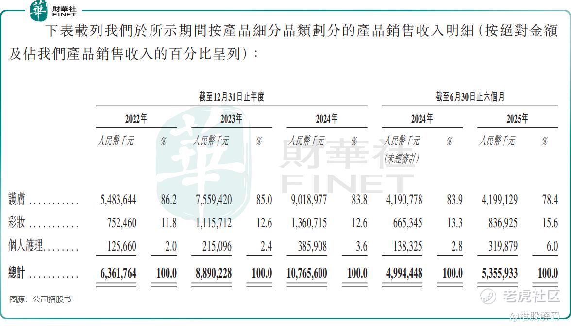 在护肤大类中,“珀莱雅”品牌仍是公司核心支柱,2025年上半年收入占比达74.3%。