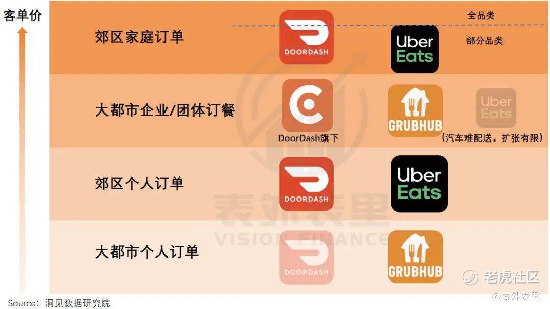 而这一幕,正是美国外卖平台错位竞争的缩影——玩家们基于自身特性,选择各自擅长的跑道,“占山为王”。