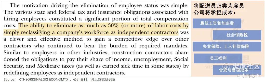 更别提选择众包,就可以甩掉社保、员工福利等一大笔支出——哈佛大学一份研究显示,将公司雇员转化为独立承包商,可节省30%甚至更多的劳动力成本。