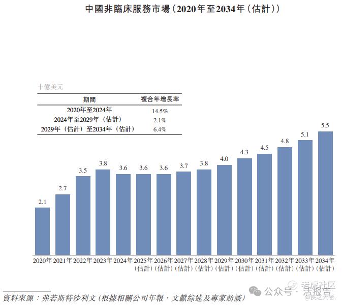 根据弗若斯特沙利文(Frost & Sullivan)的报告,中国非临床CRO服务市场由2020年的21亿美元增长至2024年的36亿美元,复合年增长率为14.5%。预计到2029年将达到40亿美元,2024年至2029年的复合年增长率为2.1%。